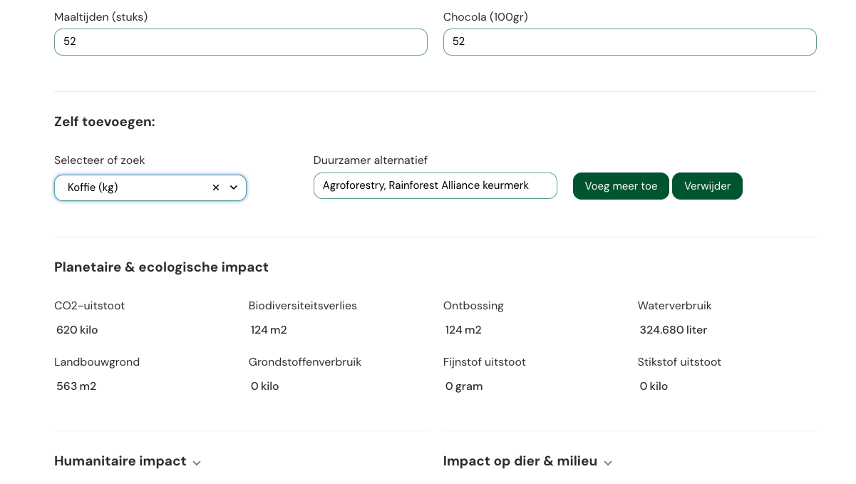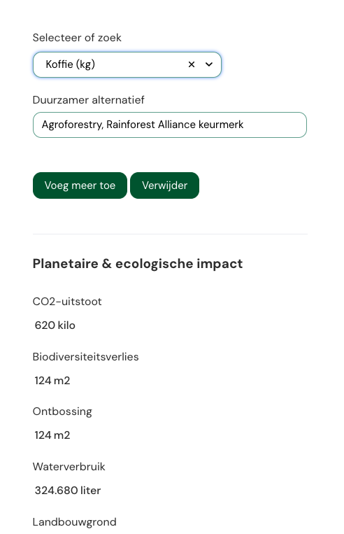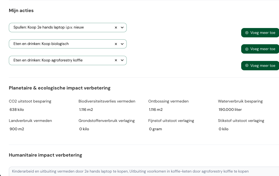 Meet de impact van jouw leefstijl aan de hand van ecologische en humanitaire indicatoren.