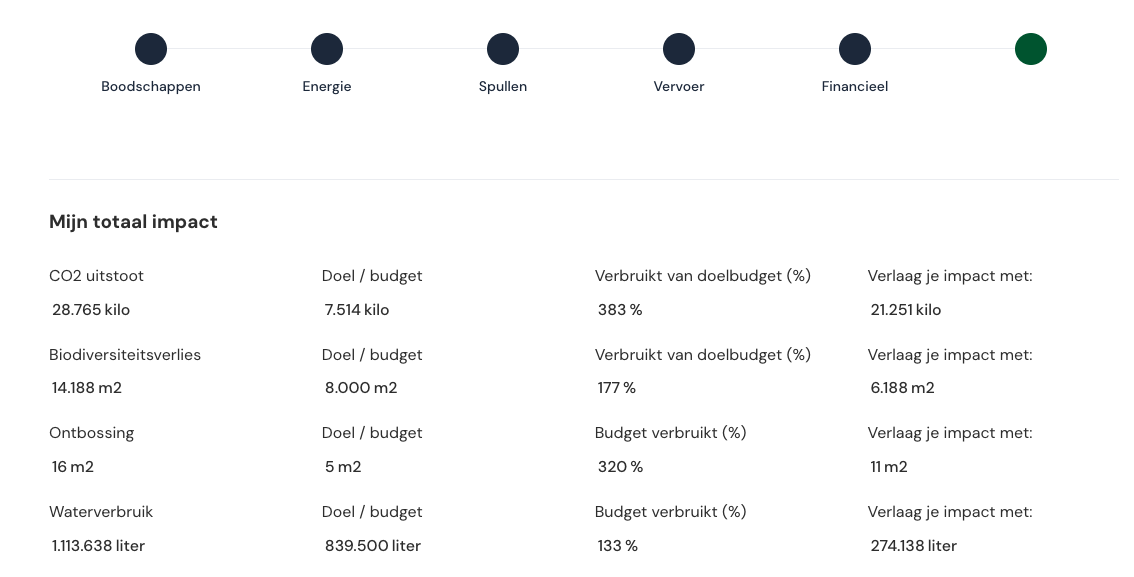 Vergelijk je impact met de doelen om binnen de planetaire grenzen te leven.